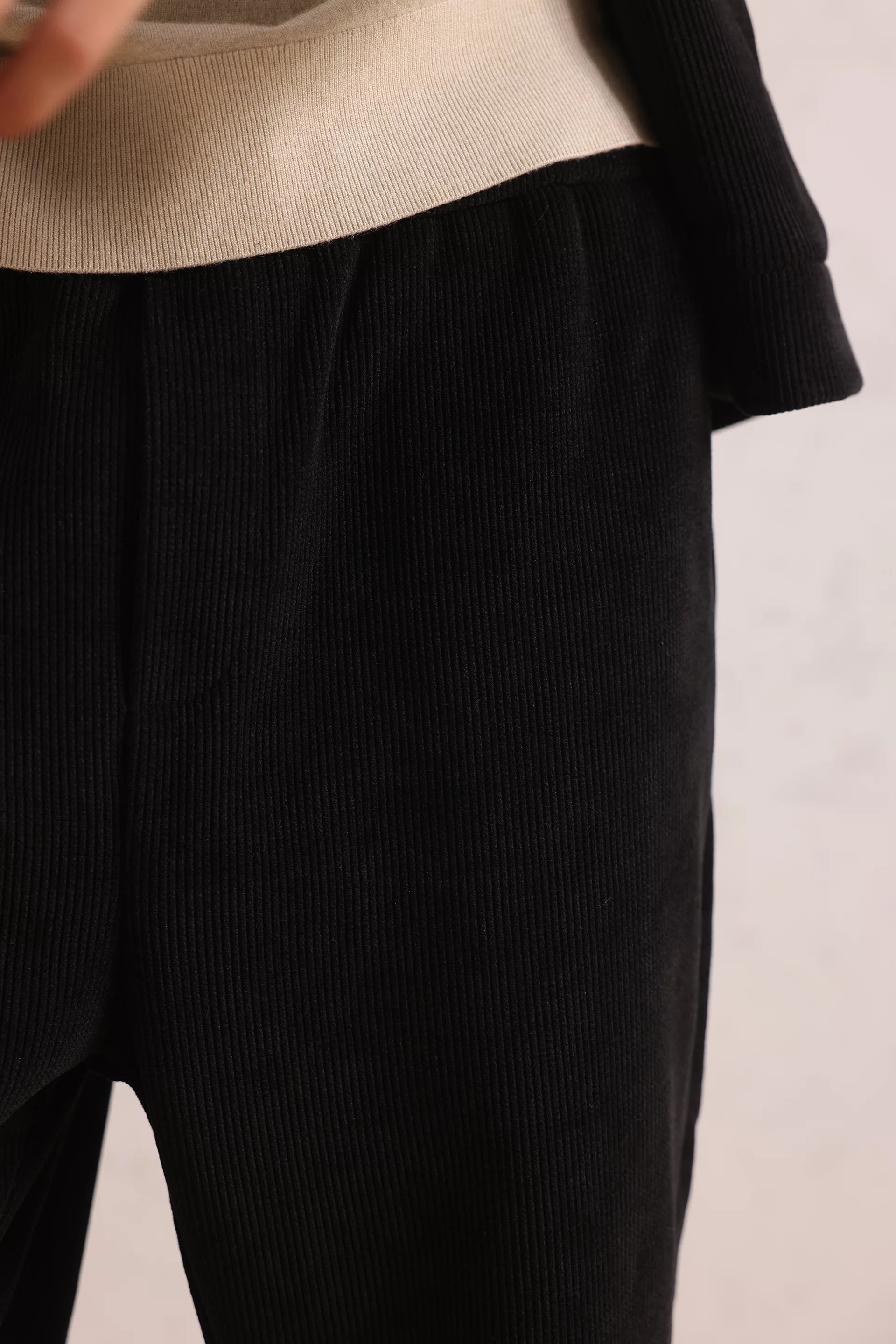 This Corduroy Co-ord Set captures the essence of restrained luxury. The jacket presents a refined silhouette with its front zip fastening, elegant turn-down collar, and gently dropped shoulders that create an effortless drape. The accompanying trousers feature a streamlined cut with side pockets and a single back patch pocket. Rendered entirely in sumptuous corduroy, this set delivers a versatile foundation without any embellishment.