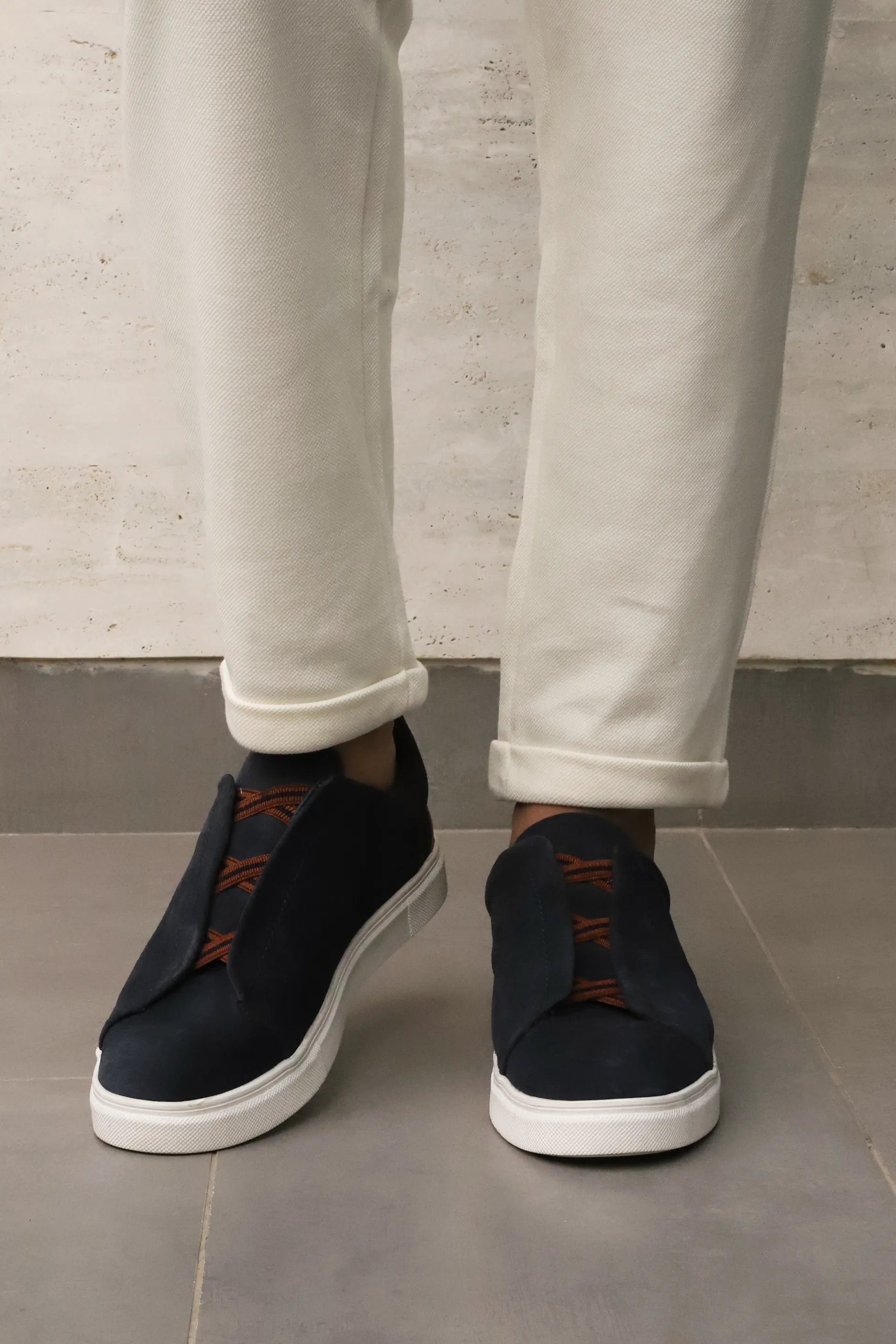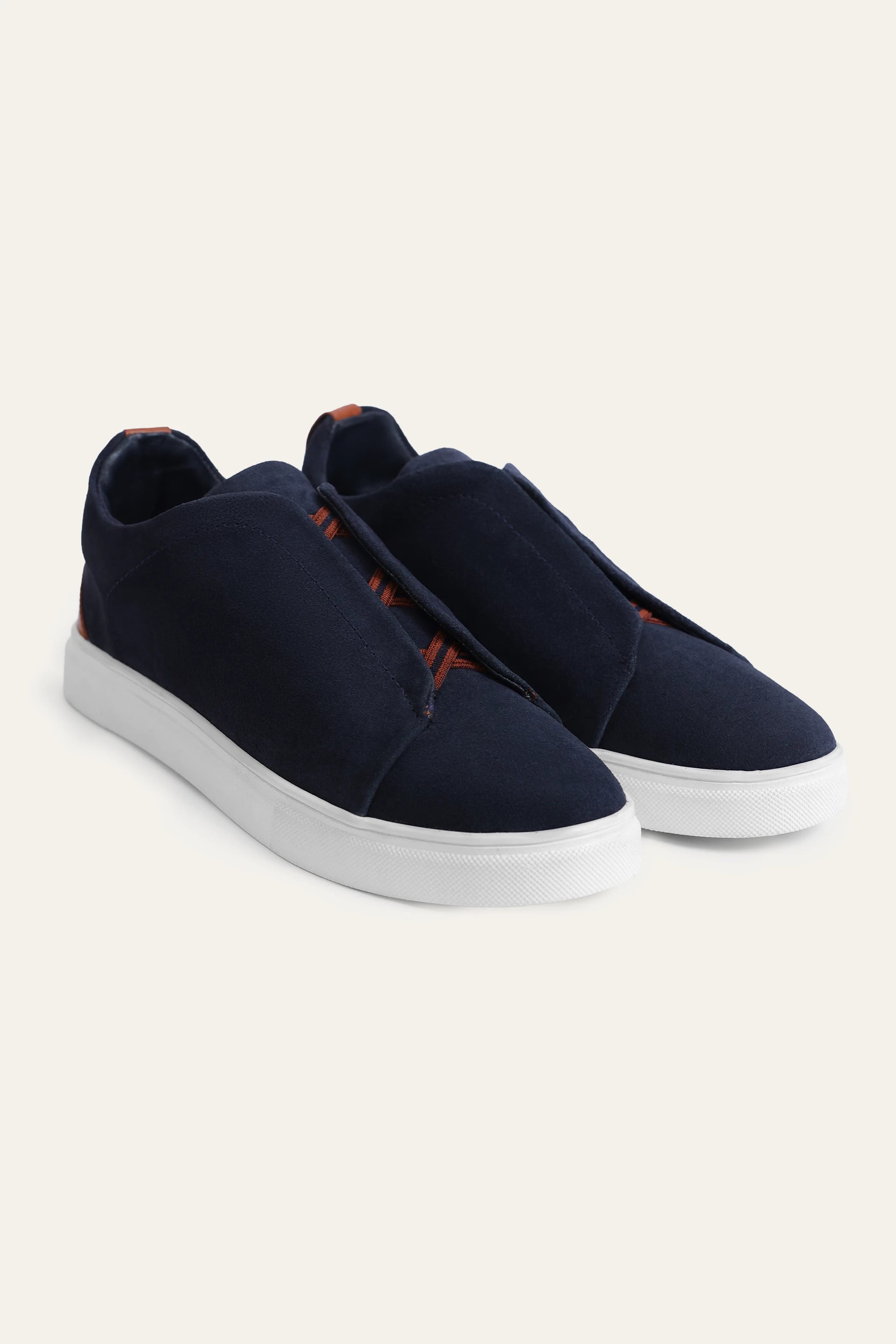 Crafted with refined sensibility, these Suede Slip-On Sneakers define contemporary luxury. The crossed elastics and convenient pull-on tab ensure seamless transitions throughout your day, while the supple suede upper delivers a soft touch against the skin. Anchored by a resilient rubber sole and rounded toe silhouette, these slip-on Sneakers balance practicality. The cushioned insole, subtly branded, provides gentle support for all-day wear.