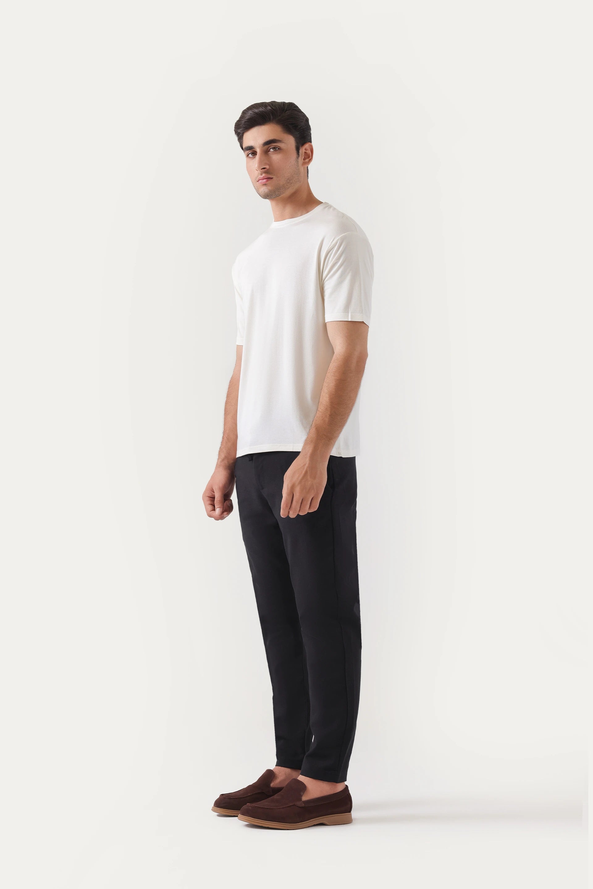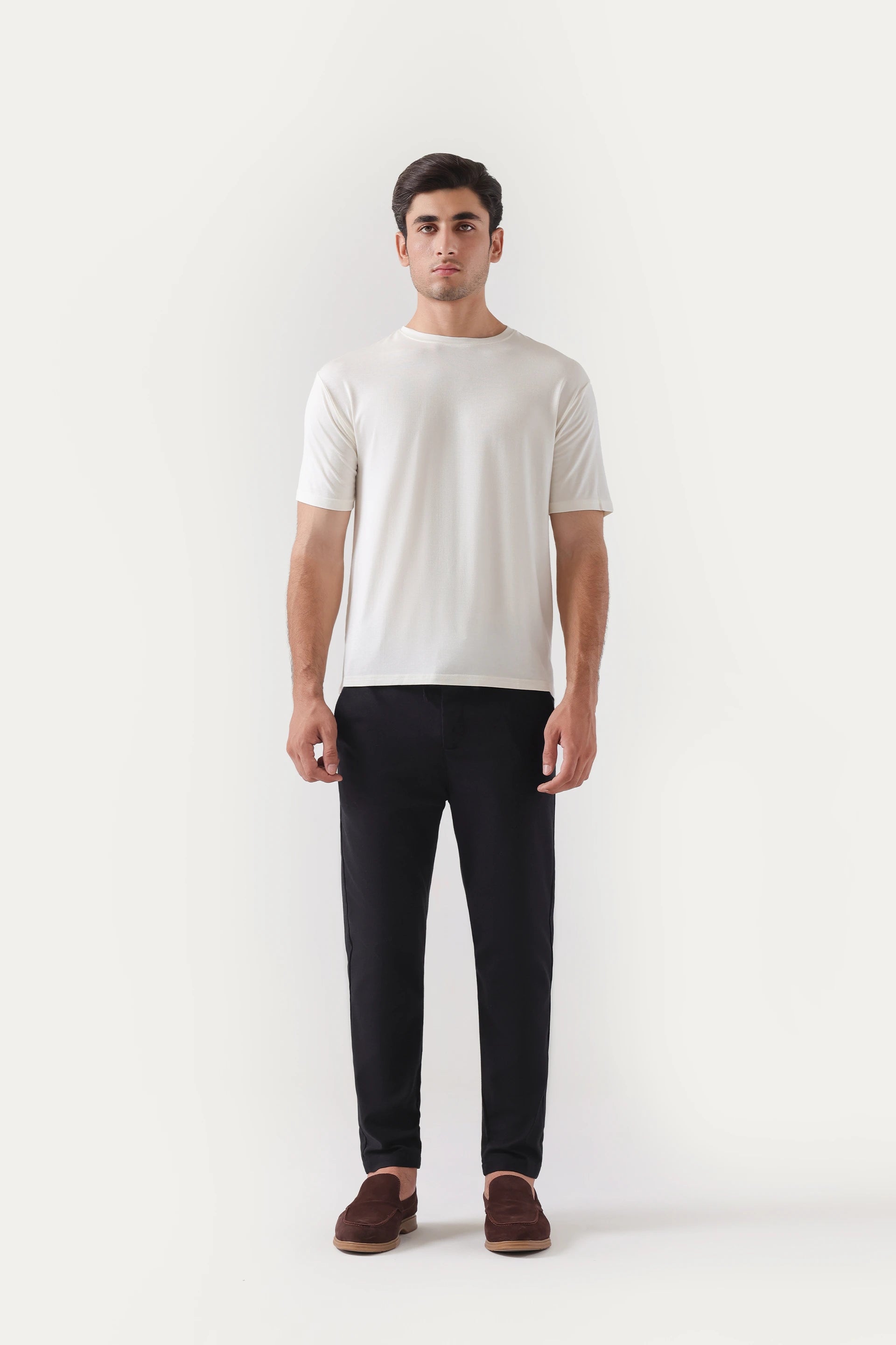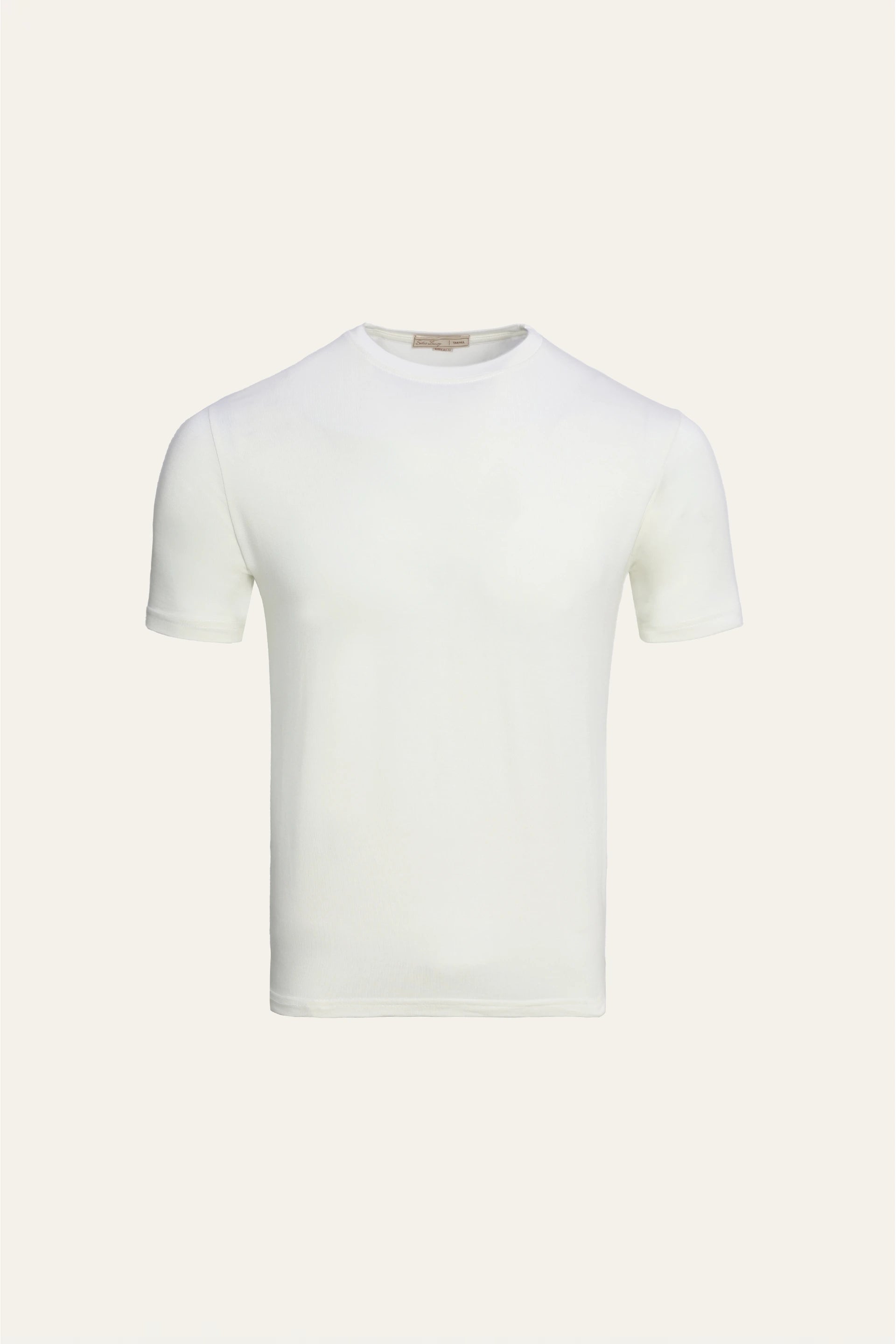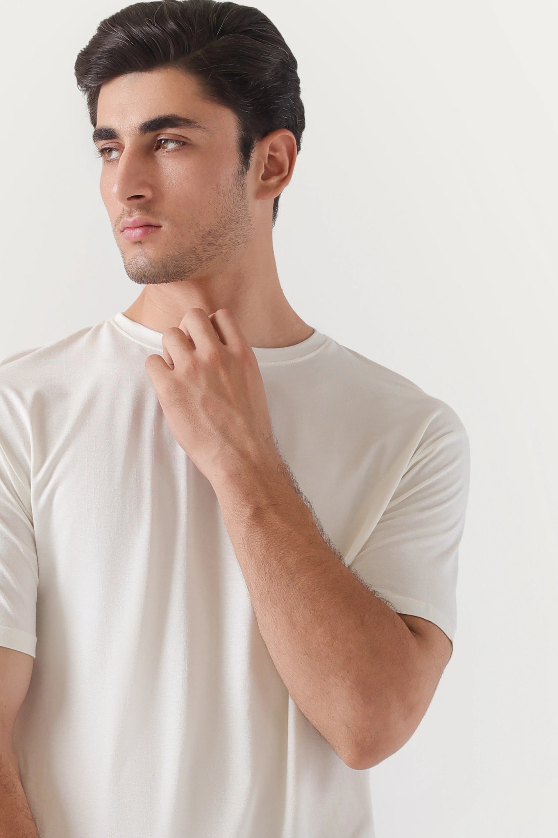 Rendered in luxurious fusion of modal and lycra, this White T-Shirt exudes everyday sophistication. The design is cut for a regular fit with subtle drop shoulders and ribbed crew neck for ultimate effortless wear.
